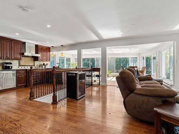Nestled at the end of a quiet dead-end street in the highly desirable community of Shrewsbury, this contemporary ranch-style home offers a unique blend of modern living and tranquility. Situated on a spacious 2-acre lot, this home features an inviting open floor plan with ample natural light and a range of appealing features. A modern kitchen with stainless steel appliances, a primary bedroom with an en-suite bath, 2 additional bedrooms, main bath, and a dedicated office on the main level. Most rooms have been freshly painted, enhancing the homes bright and airy atmosphere. The lower level offers versatility, including another office/bedroom/exercise room, a spacious family room and an unheated 3 season sunroom with direct access to the in ground pool patio area. This walkout level also includes another full bath and plenty of storage. Outside, the property sits on a sprawling 2 acre lot, providing privacy and space for outdoor enjoyment.