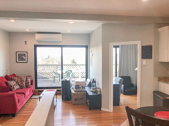 Large top floor, 2 bedroom 1 bath apartment.. The apartment features a huge private roof deck with view of Fenway Park and the Back Bay Fens, hardwood floors, renovated kitchen with stainless steel appliances and granite counter tops and common laundry in the building.
