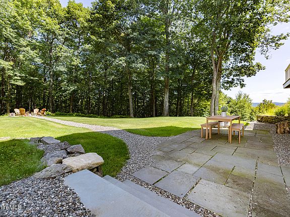 Nestled on top of a gentle ridge, this meticulously renovated home sits on 15+ acres enjoying stunning views in a tranquil, verdant setting. The thoughtful, clean design uses carefully curated materials and fine craftsmanship. Open kitchen/dining/living space is flooded with light and perfect for entertaining. Impeccable kitchen remodel features soapstone counters, rough-sawn oak cabinets, Wolf and Miele appliances. Huge French door in the dining area opens to the sunny deck with views to Yokun Ridge. Two walls of glass and a wood fireplace make the living area a delight. Upstairs, are three bedrooms with views, including exquisite primary suite, plus two additional bedrooms share a hall bath. Lower level includes a den/office suite opening to stone patio, full bath, & exercise room. Zen-simple grounds feature bluestone patio, lawns, raised vegetable beds, pollinator gardens, and a fire pit. Huge two-car garage with work area. Complete privacy on a lovely community road, minutes to Chatham, Queechy Lake, West Stockbridge, Tanglewood, Kripalu, and the best of the Berkshires. Soak in the beauty, the light, and the pristine, peaceful vibe at this move-in-ready gem.