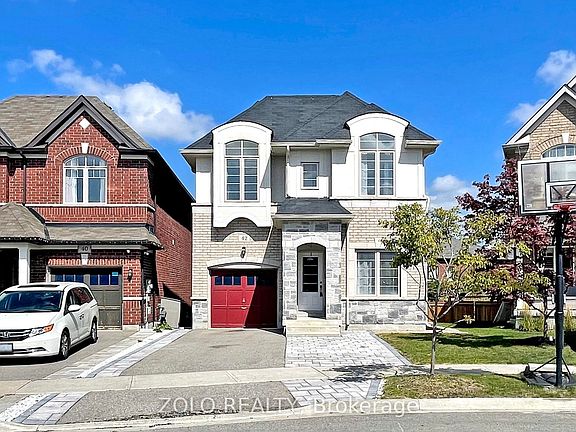 This stunning home, located on a premium pie-shaped lot, offers nearly 3000 square feet of beautifully designed living space. The open-concept layout features 9-foot ceilings, creating a spacious and airy atmosphere. The modern eat-in kitchen is equipped with a large center island, breakfast bar, quartz countertops, and stylish lights/ pot lights. The dining area provides a walkout to the deck and backyard, making it ideal for entertaining. The formal family room includes a cozy gas fireplace for added warmth and comfort. Upstairs, you'll find four generously sized bedrooms, with the convenience of a second-floor laundry room. The custom-finished lookout basement apartment, accessible through a separate entrance, includes a fifth bedroom, a 4-piece bathroom, a second laundry, a full kitchen, and a built-in sound system. Close public and catholic shool..