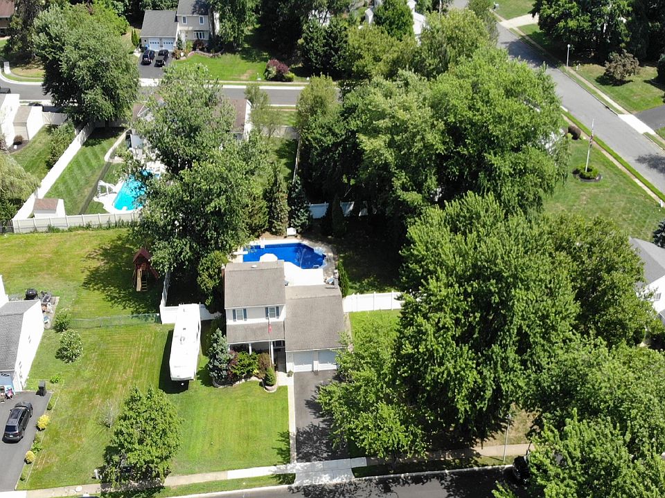 Lifestyle influences happiness. Located in the suburbs of Hazlet, NJ, subdivision of Tall Oaks, landscaped to provide privacy, amenities that include a front-porch, in-ground pool, concrete patio, .43 acres of land where the grass is greener, kids and pets have the space to roam and there is space between you and the neighbors is this Colonial which features 3 bedrooms, 2 full baths, a family room with a fireplace, living room, dining room, eat-in-kitchen, a work out room in the partial basement, 2 attic areas for storage, and a 2-car garage you can covert, expand over it or do both when you are ready. Life in the suburbs is more convenient than you think when trails, parks, golf and beaches are centrally located and easily accessible. This is a rare opportunity not to be missed.