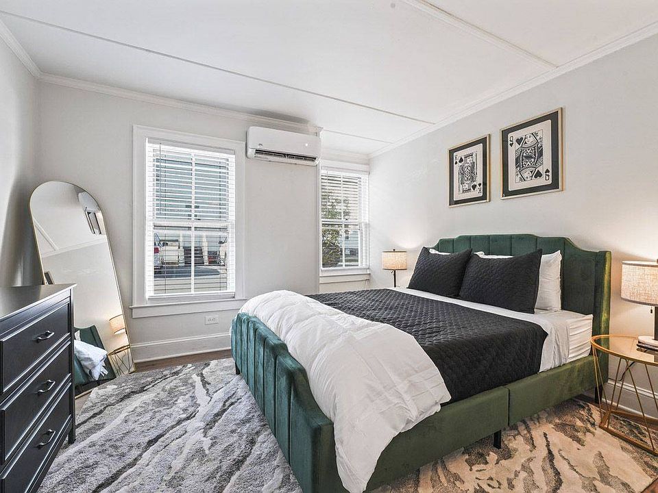 Experience a piece of Saratoga here at this newly updated Canfield Casino themed first floor 2 bed/ 1 bath, 600ft Saratoga Stay by Green Springs. Positioned in the heart of downtown, walkable to downtown or the Saratoga Race Course, this location, easily accessible to the best Saratoga has to offer, can't be beat. Just a convenient few steps from the parking lot will find you at the entrance of this first floor unit. We have carefully outfitted the space with all of the accommodations you'll want or need for relaxing, cooking, dining, sleeping, bathing, working or web surfing. Laundry -shared/on site Fully outfitted kitchen Towels/linens provided Shared furnished front porch Work from home accommodations Coffee, groceries, movies, dining a few short blocks. NONsmokers Strictly! 3 person Occupancy max Lease Lengths Available: 6, 9 or 12 months ANIMALS: Animal friendly - max 2 50lb total animals weight limit NEIGHBORHOOD: This property is ideally positioned between a quiet neighborhood on the backside and the invigorating bustle of Saratoga from the front. Mere blocks of easy walking to either Saratoga's race course or downtown Broadway's shopping, dining, parks and nightlife. Given the downtown corner lot location there is potential for related audible noise. Complimentary earplugs available to accommodate guest preference. BEDROOMS: For sleeping there are two bedrooms each outfitted with a Queen bed with plentiful pillows and warm cozy seasonal layers. KITCHEN/ DINING: For meal time there is a kitchen with plentiful bakeware and cookware as well as a shared outdoor grill for a wide variety of culinary prep wants and needs. BATHROOM: For bathing there is a beautiful newly renovated subway tile full tub/shower bath stocked with beauty care basics and plentiful bath linens. RELAXATION: For indoor relaxation you'll find board games along with Smart TVs powered by free high speed internet, complete with basic cable loaded with streaming services apps ready for personal login access. OUTDOORS: For outdoor enjoyment there is a shared charcoal grill stored in the back of the building for use in our shared outdoor space. LAUNDRY: Property shared coin laundry room available for use during your stay. ACCESS: This is a multi unit property. Each individual apartment has its own private secure entry. The entire unit is yours and in no way accessible to any other building occupants. PARKING: One off-street parking spot Plentiful on-street parking. UTILITIES: Flat $225/Month fee ONE TIIME FEES: $250 cleaning fee $95 Move In