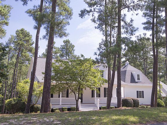 This lovely southern style home in Pinewild offers three levels with over 4,400 heated square feet. The Formal Entry leads to a Two Story Great Room which offers an impressive wall of windows, high beamed ceiling, stone fireplace and built in cabinets. The Formal Dining Room and Master Suite finish off the Main Level. There are hardwood floors throughout the mail level. The Upper Level features two Guest Suites, Bonus Room that can be used as a sixth bedroom and two full baths. The lower level provides a recreation room with a full kitchen with a large patio for entertaining and two bedrooms with a full bath. There's an additional laundry room or space that can be used for an office. Many upgrades that include a coffered ceiling, wainscoting, marble countertops and beautiful flooring.