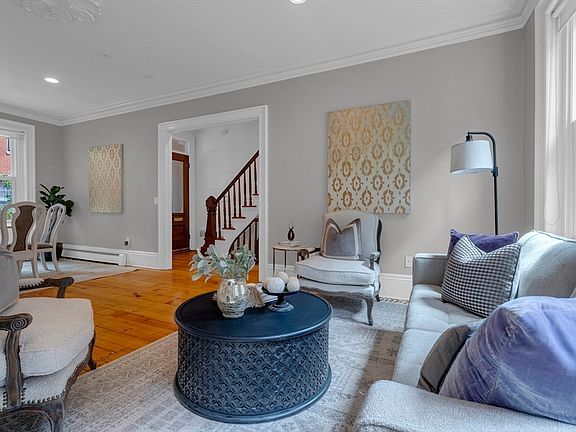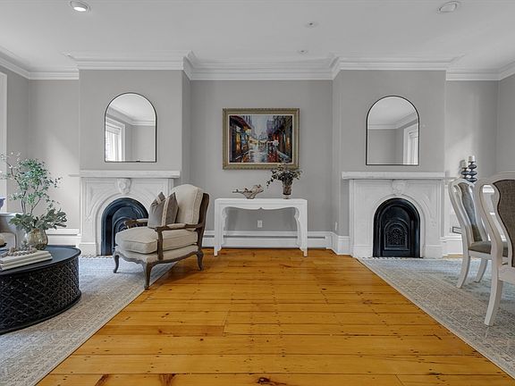 Choice high-stoop 4 plus bedroom/2-1/2 bath Federal style townhouse on charming, quiet side street in the heart of the South End's prime Ellis neighborhood. Enter to gracious foyer and stately front-to-back living/dining room featuring oversized windows, two original marble mantels, recessed lighting and crown molding. Beautifully maintained original wide pine floors throughout. Downstairs is a large chef's kitchen offering six-burner gas range with vent hood, granite counters, loads of maple cabinets and tile backsplash, plus room for informal dining table. This overlooks the wonderful family room with two-story wall of windows, soaring ceiling, gas fireplace, and door to serene landscaped garden and brick patio. Upstairs are four bedrooms including primary with a wall of closets and shelving plus bonus space perfect for gym or home office. Contemporary tile baths, central A/C and in-home laundry. Full staircase leads to lovely roof deck with panoramic skyline views. Not to be missed.
