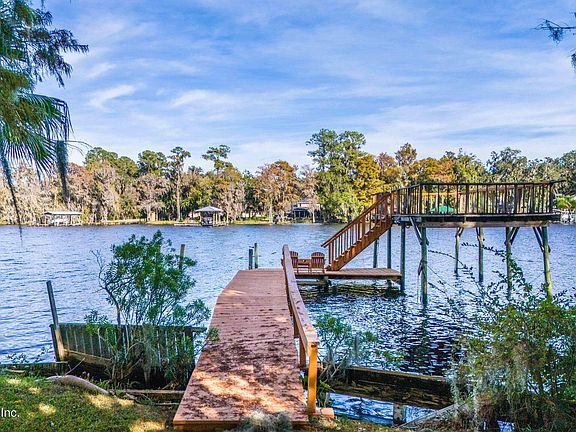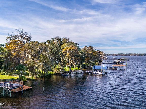 Come see this beautiful 3 bedroom 2 bath high and dry waterfront home. This well maintained property is situated on the Doctors Lake side of the Swimming Pen Creek bridge with deep water access which would accommodate boats. The all brick custom, one owner home was built by Poimboeuf homes and features a fairly new roof (2017), a circular drive, a two car garage, and a two level dock with covered boat slip. Inside, the home features solid oak floors, high ceilings, separate dining area, formal living room, a den with fireplace, and a separate office. There is also a screened patio with excellent views of the water. This property is in a protected area which fronts on scenic Swimming Pen Creek but is just off Doctors Lake and connects to the St. Johns River beyond. This home has never flooded and won't last long so make your appointment to see it soon!