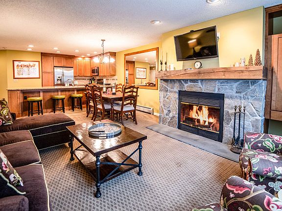 Nicely positioned 3 bedroom unit with easy access to the slopes as well as the community amenities. Large tiled entry with built-ins and laundry. Updated kitchen with wood cabinetry and hardwood floor, granite countertops, and tiled backsplash. Living/dining area centered by a stone facade woodburning fireplace. Deck off living area and owners bedroom offers long distance winter views. Two additional bedrooms with two full baths. Baths have updated wood cabinetry, granite countertops, and tile floors. Updated windows throughout. Exterior private ski locker to the slopes.