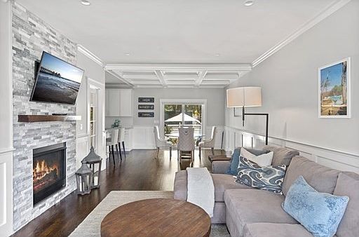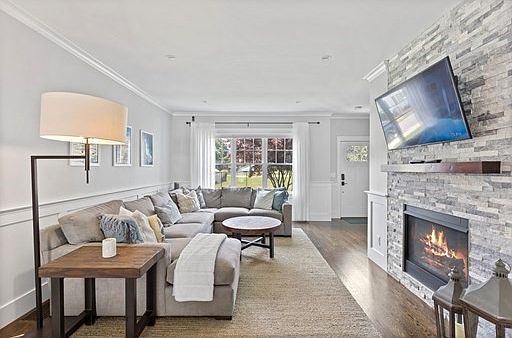 42 Hawthorn Street presents a prime opportunity to live in Newton! This modern contemporary townhome is situated directly across from Pellegrine Park and is conveniently 15 minutes away from Boston. The main level's open floor plan consists of a crisp white kitchen with quartz countertops and SS appliances, adjacent to a sunny dining room with coffered ceilings, shaker style wainscoting, and direct access to your private rear deck, stone patio & fenced in backyard! A large living room boasts recessed lighting and a gorgeous stone-clad gas fireplace. On the 2nd floor, a spacious master suite features a sizable, custom built W/I closet and a luxe en suite bathroom dripping in marble. Completing this floor is two additional bedrooms, a full bath w/ double vanity, and laundry. The fully finished basement offers a family room, bonus room, and full bathroom. Nearby to the Mass Pike, Whole Foods, local shops/restaurants & public transportation. All that's left for you to do is come and enjoy!