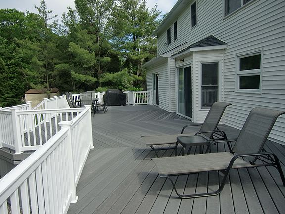 Expanded Buckingham model set in a cul-de-sac, backing to wooded privacy in prestigious "Foxcroft Manor". 5 Bedrooms, 4 full baths, central vac, security system, full finished basement includes heat & central air, rec area, guest bedroom (#6), bathroom & lots of closets + plumbing rough for future wet bar. Hot water baseboard heating on all 3 levels (great system for allergy/sinus conditions). Gas fireplace, recessed lights everywhere + hardwood floors in foyer, living, dining, family room, bedrooms & hallway. Bright kitchen offers stainless steel & tile back splash + stainless steel appliance package. Everything is cared for meticulously by this original homeowner, many new upgrades + thoughtful changes they made to the floor plan. All bathrooms are tiled over ceilings in the shower/bath area. 800 sf deck with two stairways to the yard and bump out for grill. Paver walkway to the impressive columned entry (maintenance free) with double doors, freshly sealed driveway lined with Belgium blocks and 4-Season landscape.Just 4 blocks to NY bus, Dunkin Donuts, Starbucks, Bagels, Pizza, etc. Call for additional information.