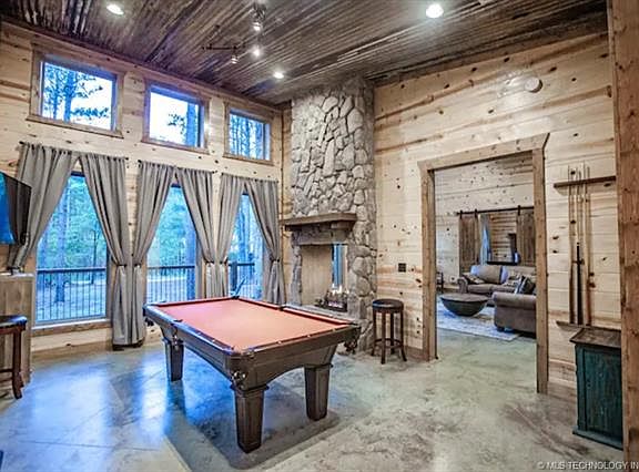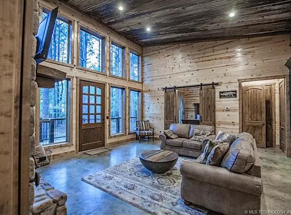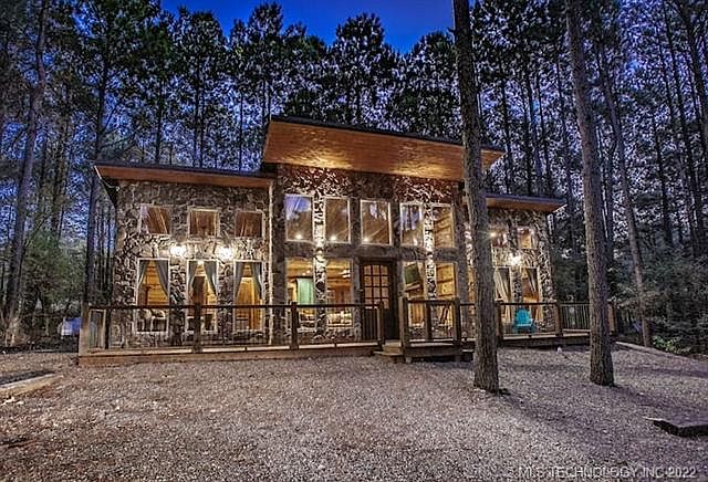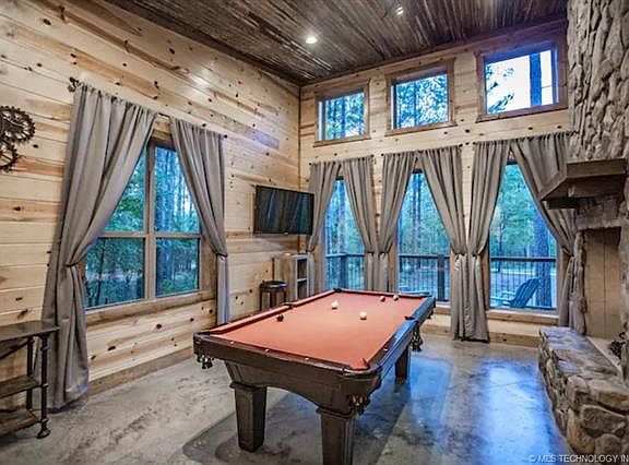 "Romancing The Stone" one of the hottest Airbnb's in Hochatown. This luxury cabin was featured on HGTV house hunters. It is located in the heart of Hochatown. Turnkey operation; 2 king size bedrooms, 2 ensuite baths, soaring ceilings, gameroom with pool table, double sided fireplace. Huge living room with 2 leather sofas, 1 is a pullout sofa bed. XL Master suite. Kitchen and baths are amazing. Hot tub, firepit, nestled in the pines. New luxury linens, & kitchenware, all 5 star reviews. Excellent value.