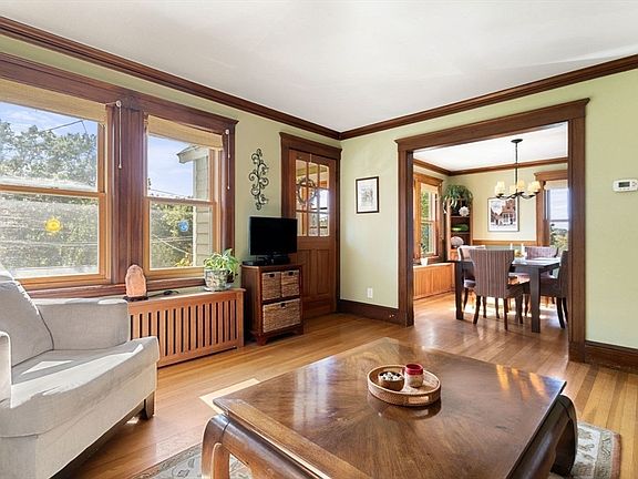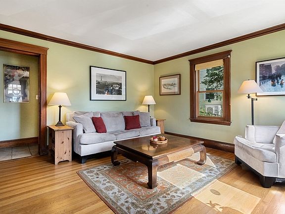 Metropolitan Hill Gem! Bright and sunny, this lovely 3 bedroom, 1.5 bath home has many inviting features - highlighted by a fabulous oversized private backyard with its mature shade trees, garden beds, and a stone patio - perfect for relaxing, entertaining, or play. The first floor features a kitchen overlooking the back yard, a formal dining room, a living room, a bedroom/office and a half bath. Upstairs has two more bedrooms, a full bath and extra storage under the eaves. The walkout basement provides laundry and tons of extra storage space. Notable features include custom handcrafted built-in wooden radiator covers throughout, hardwood floors, Harvey wood-framed windows, and stunning sunset views! One off-street parking space included. All this moments from Roslindale Village, the Farmers Market in the Square, the commuter line, buses, shops, markets, bakeries, restaurants, the library, George Wright golf course, Fallon Field and Playground and easy access into the city.