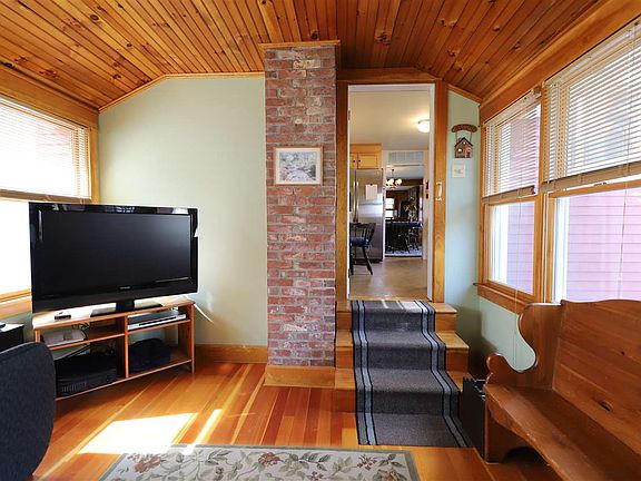 Lovely village home on landscaped, corner lot located in Ludlow Village. This very comfortable home has a primary bedroom on the main level and a relaxing sunroom that connects the main house to the one-car garage with added storage space. Kitchen, dining room, living room with gas stove, primary bedroom and full bath complete the main living area, with enough windows to let the sunlight in. The upper level has additional bedrooms and a bathroom. The shuttle bus runs in front of the house on weekends and holidays for easy access to skiing on Okemo.
