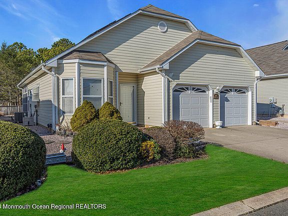 Welcome to the epitome of comfortable and elegant living. Nestled in the renowned community of Atlantic Hills, this Nantucket model has stunning features such as decorative molding that accents its high ceilings, fresh paint, and new floors throughout the home. Entertain with ease in the expansive living & dining spaces, featuring a remarkable pass-through gas fireplace that elegantly connects the living room and family room. The kitchen also features a stainless steel modern fridge and a breakfast nook on top of your separate dining room. The large primary bedroom showcases a master bath with double sinks, a huge tub, plus a stand-up shower, providing a spa-like experience. Year round Florida Room perfect for your coffee or soaking in some sun. This is one of the larger models in this community which also features not 1 but a 2-car garage with plenty of additional storage. Take advantage of the community amenities such as the pool or exercise room, as well scenic walking & jogging paths. Solar panels save you a ton of money on your electric bills plus the roof was redone when the panels were put on so no need to worry for years to come! AC/Furnace only 2 years old as well. See this beautifully maintained home today before it is gone, priced to sell.