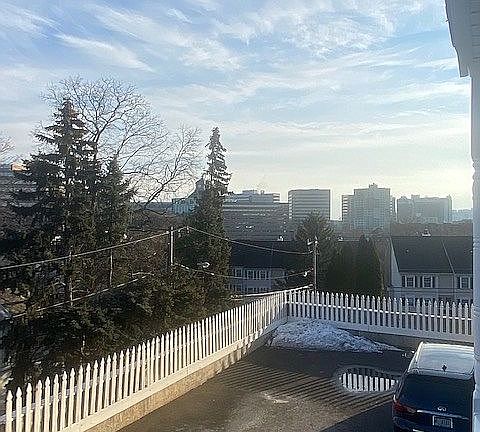 Spacious separated townhouse in a fantastic location close to downtown Stamford. Large family room and master suite, updated kitchen, bathrooms, and downstairs powder room. Large sunny back deck and covered front porch with views of downtown. Two car garage with finished room in back for office or gym and ample storage. New in 2021: High Efficiency complete HVAC replacement and duct cleaning, new roof, rebuilt/stained/painted back deck and fence.