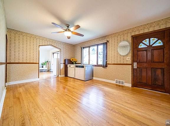 This expanded Cape Cod single family home is located in residential section of Dumont. The property offers 6,400 square feet land and 1,662 square feet of living space. Newly upgraded central AC and heating, new hot water heater, and hardwood floors throughout. The first floor consists of entry foyer, living room, two story high dining room, kitchen, master bedroom, 2nd bedroom, bathroom, and a huge deck. The 2nd floor offers seating area, an office that overlooks the first floor, 3rd and 4th bedrooms, and a bathroom. A finished basement offers a family room, laundry, and a utility room. The backyard is an organic garden with dozens of fruits and vegetables - fig tree, grapes, cucumber, sesame leaves, peppers, lettuce, and Korean vegetables. One block to Manhattan bus #166, close to school, parks and Cresskill memorial circle.