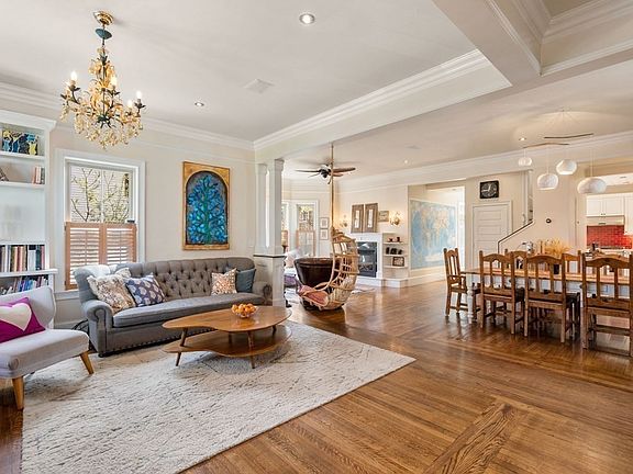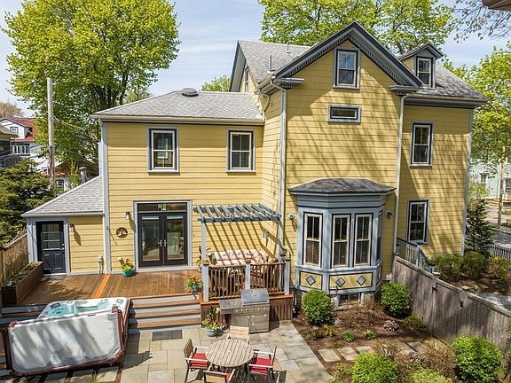Dreamy Victorian on a lovely tree-lined street in the desirable Pondside neighborhood. This inviting, light-filled 10-room home was designed w/ entertaining in mind: you’ll love the expansive 1st floor w/ fireplace seating area, open dining and living room with bow windows, custom built-ins, 10’ ceilings, and crown molding. Your renovated, well-appointed kitchen has French doors to a landscaped fenced-in yard, where you can relax on the deck in dappled sunlight from the pergola or slip into the hot tub under the stars. An elegant staircase leads to the 2nd-floor primary bedroom with an en suite spa bath featuring a steam shower, soaking tub, radiant marble floors & walk-through closet with vanity. Two additional bedrooms & a bath w/radiant floors round out the 2nd floor. A 3rd-floor suite has a bedroom, study, sitting area & bath. Central air, mudroom, 2-car parking, & spacious basement w/ plenty of storage. Close to shops, restaurants, Eliot School, Footlight Club, Arboretum & Pond!