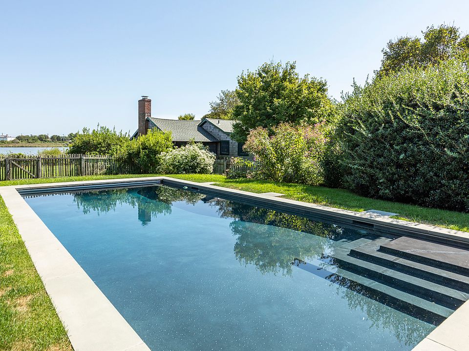 A haven of tranquility on Fort Pond in Montauk . There is a 3 bedroom , 1 bath renovated cottage with barn wood antique floors, wood burning fireplace, eat-in kitchen and a wonderful screened in porch overlooking the water. Custom built pool house and salt water gunite pool. Enjoy paddle boarding, swimming or sailing in your backyard. The property affords total privacy with a nature preserve along the west facing border. Centrally located to ocean beach and village.