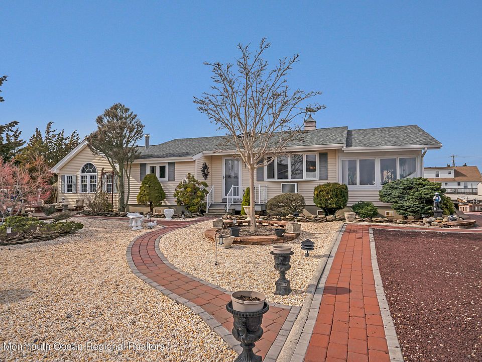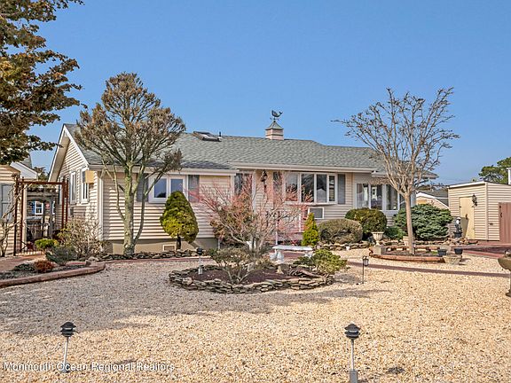 This immaculate waterfront property is situated on a cul-de-sac in the Atlantis section of Little Egg Harbor. This property features 160 ft of bulkhead on a wide lagoon, 3 bedrooms, 3 full baths, and detached garage. Vaulted ceilings throughout the home. Updated kitchen with stainless steel Samsung appliances, granite countertops, tiled backsplash, and hardwood floors continue to the dining area with skylights and double glass doors. Enjoy your morning coffee with spectacular views of the lagoon in the wrap around four seasons room. The outside entertainment space offers a deck, expansive paver patio, boat lift, floating dock, outdoor sink with plumbing, and tons of outdoor storage space. FEMA compliant and low flood insurance.