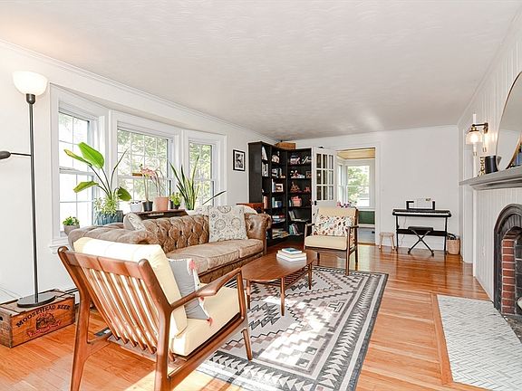 Walpole Center! The saying "location, location, location" rings true with this beautiful 3 bed, 2.5 bath cape style home. Set in a desirable neighborhood, just a short distance from Walpole High School and the center of town with all it has to offer. When you enter through the side door, you'll find a spacious living room with wide plank hickory floors, wood stove and new half bath (2022). The kitchen, renovated in 2015, has stainless steel appliances and island with granite counter tops and hickory cabinets. The kitchen then flows into the dining room for ease of dining and entertainment. Around the staircase, there is a cozy family room with fireplace. Off the family room is a fabulous 3 season porch overlooking the lovely .37 acre lot. Upstairs there are 3 bedrooms and 2 bathrooms. The master bathroom was just added in 2022 with finishes matching the 1941 charm found throughout the home. First Showings at Open House Sat 3/23/24 12-2, additional showings Sunday 3/24/24 12-2.