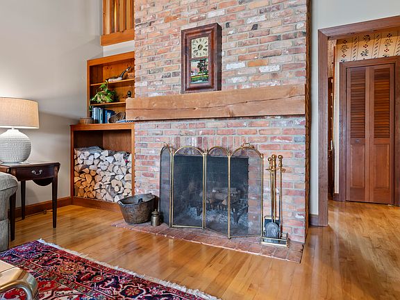 Stunning fireplaceAttached two-car garageDouble ovensGas cooktopFour-season sunroomPrivate acresCentral chimney