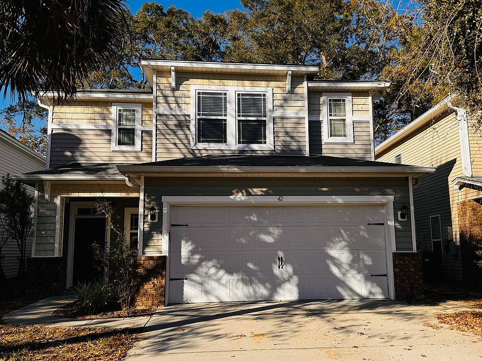 Great home in Palmetto Pointe with a fenced in yard and large paver patio with fire pit. It features a 2 car garage with plenty of storage area. Downstairs has an open layout and all bedrooms are upstairs. There is a loft area which is a great extra flex space. Washer and Dryer is included as well as trash service, pest control and access to the community amenities (pool and 2 playgrounds). The Primary bedroom closet and laundry room both have built in shelving. Jack and Jill bathroom upstairs between the two non primary bedrooms. $50 application fee/background check. $2800 security deposit, 1 year lease. Dogs will be considered with a pet deposit. Pest control, trash and recycling services are included. Renter is responsible for lawn care and utilities (electric, water and Internet). Lease is 1 year and a security deposit is required ($2800)