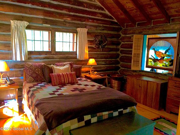 Charming Log Cabin 30 Feet above Harrisburg Lake. Overlooking the deep cove and swimming area. Metal roof, two fireplaces, sleeps 6, Full stone skirt foundation (dry sandy base), 500 ft deep well, Septic/Cespool, Storage Shed, most furniture and decorations included. 3 Season camp which can be kept open year-round with use of Monitor (Kero) Heater. Adirondack Ceiling Fans and Stylish Decorations. Large Shared Beach on grounds via HOA with no annual dues. Bring your kayak or canoe and a camera. (No Short-Term Rentals in this Group - Owner Occupancy Only).