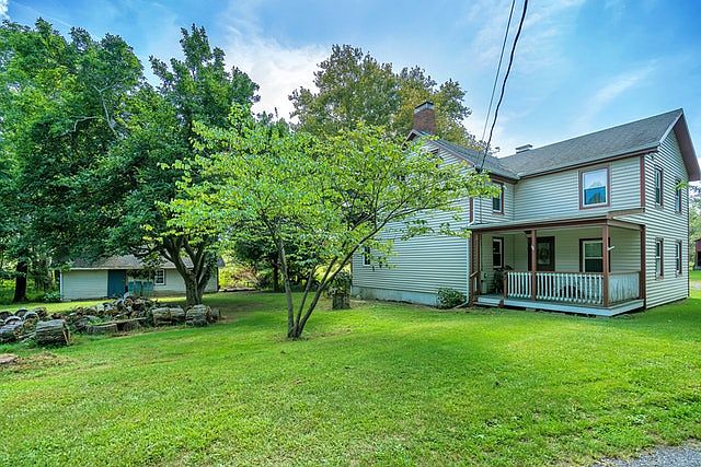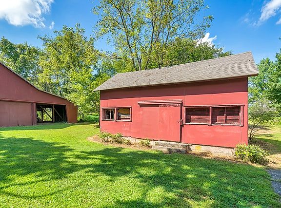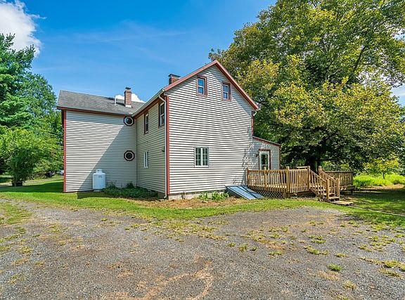 Opportunity to make this property your own. Situated on 7 acres this 3 bedroom 2.5 bath colonial, Circa 1800 property includes newer large 2 car garage with work area, 2 barns and separate workshop-all with electricity. Large living/dining room with 2 stone fireplaces, lovely 3 season room overlooking large newer deck and pastoral views, original wood floors/beams, newer windows/siding, country kitchen with stainless steel appliances and laundry hook up; newer oil furnace. Invisible electric dog fencing with included collars surrounds property. Mature landscaping including fruit trees and grapes.