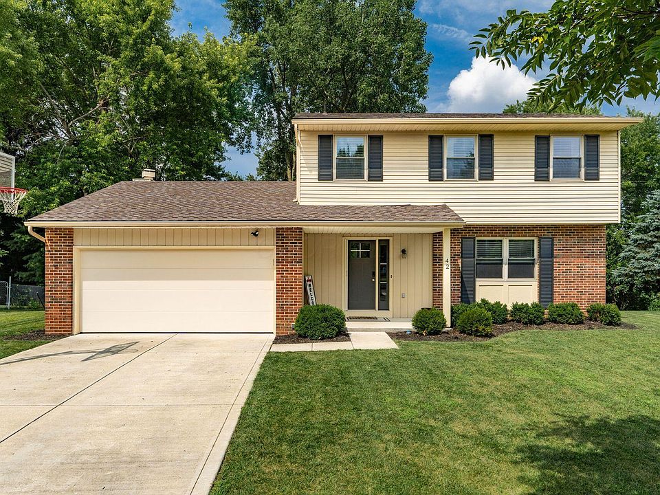 Welcome home! This amazing 3 bedroom, 2.5 bath home has over 2,170sf of finished living space. The majority of the home has been updated within the past 5 years, allowing for carefree living with modern amenities. Kitchen offers an abundance of cabinet and counter space, featuring upgraded cabinets, quartz counters and soft close hardware. With sufficient eating space next to the kitchen, the dining room has been beautifully reimagined into an incredible flex room with an oversized dry bar, with quartz counter, along with a wall full of floor-to-ceiling cabinets! Huge living room allows for family gatherings and the family room, with fireplace, opens to the stamped concrete patio. Good sized primary suite has newer flooring and an updated bathroom. 2 additional bedrooms and full bath round out the 2nd floor. The basement is partially finished and is a perfect recreation room and allows for a separate office. Plenty of additional storage, as well. The backyard is one of the largest in the neighborhood and offers tons of privacy. Roof, gutters, front door and rear door were all replaced in 2022. Kitchen & Baths updated in 2022, AC & Furnace in 2019, Hot Water Tank in 2020. This property is within walking distance of the high school, parks and historic downtown Canal Winchester!