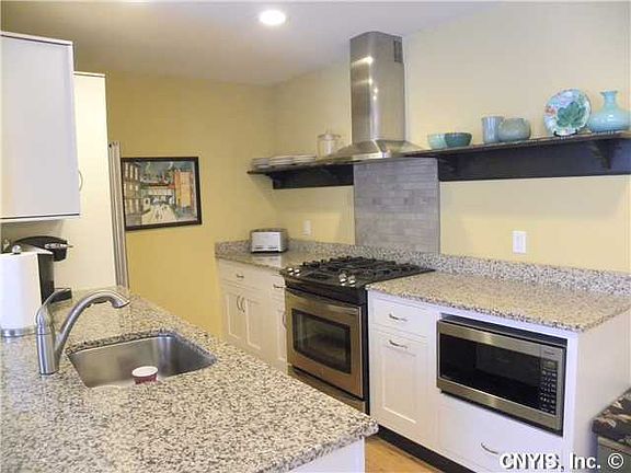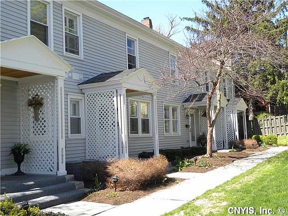 Independent Living! Manageable Maintenance! Low condo Taxes! Heart of Skaneateles Village! Take a look at this pristine condo in a historic downtown building beautifully transformed into 4 side by side townhomes in 1997. The bright renovated kitchen offers SS appliances, great layout & granite counters. Custom built-window seat & gas fireplace adorn the living room wall. Bedrooms and gorgeous full bath are on the second level. The finished walk-up attic is a bonus & used as family room and office. A garage & additional parking spaces complete the package.