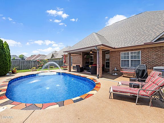 Recent updates include fresh paint, new HVAC, new pool liner and pump, new in-ground sprinkler system, refreshed landscaping, an updated primary bath, elegant crown molding, and a new roof (2021).