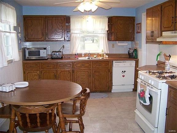 BACK ON MKT THRU NO FAULT OF SELLER. BUYERS COULD NOT GET LOAN SO DEAL FELL THRU.Welcome in to this great home that has many updates: newer laminate flooring in living room & 2 bedrooms, master bedroom has newer carpet. Newer furnace & a/c, brand new water heater, roof replaced too. Cozy home has nice living room area, eat in kitchen -- stove, refrigerator, newer dishwasher & microwave all stay! New beadboard put on kitchen walls. Breezeway has been converted into full time living space, updates made to bathroom include new mirror, light fixture, toilet and flooring. Newer paint throughout home. The large garage measures 24x24 & has some cabinets and shelving that stay. Large lot measures 100x150 and backs to 1 home that owns several lots.Land across street is owned & maintained by city but makes another great play area. Vinyl siding for ease of maintenance here. No pets inside home since they took ownership, non smoking home. 2 Patios. Will leave the laminate flooring for mstr bdrm.