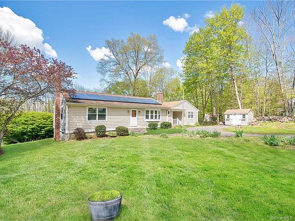Come and see this very well maintained home located in a country like setting just minutes from I-84. This ranch is very spacious and features an open concept with a great layout. Master is located on one side of the house for privacy and includes its own bath. The other three bedrooms are nice and roomy with good sized closets too. Downstairs level has more finished space and includes a beautiful family room with Vermont Casting Woodstove and bar area. Another finished area could be office or other bedroom. Appliances all less than six years of age, and electrical has been upgraded to 200 amp service. Vinyl siding was added in 2016 along with new windows. Chimneys have both been repointed, and one chimney has been completely rebuilt. Solar panels were added in 2017 and electric bills are very cheap. Solid, well built home. Showings to begin on Friday, May 14th.