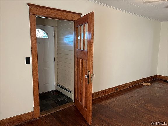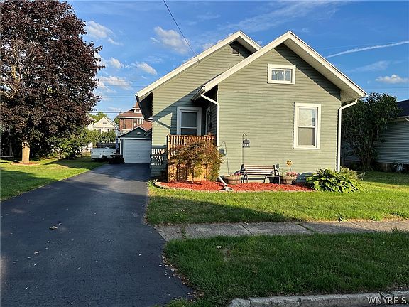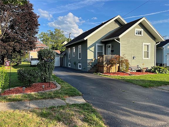Have a look at this move-in ready 2 Bedroom Ranch! Modern eat-in Kitchen with center island & bar stools! All appliances included - new in 2021! Spacious dining & living room with beautiful hardwood flooring and natural woodwork! Vinyl windows throughout. Fully fenced backyard & nicely landscaped lot! Detached garage with new garage roof in 2020. Conveniently located close to schools, shopping, and the Thru-way!