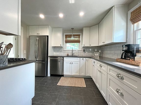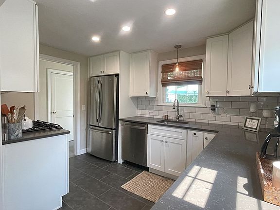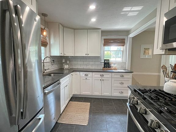 Nothing to do but unpack your bags. Sought after location for this beautiful Colonial with renovated kitchen, ceramic tile backsplash and floor, SS appliances, gas stove, pantry closet, hw floors throughout, first floor bedroom, living room with fireplace, 3 season porch, dining room off kitchen, 1/2 bath. Second floor offers remodeled full bath and 2 additional bedrooms including primary with 2 closets. Spacious & private backyard, patio for relaxing, attached 2 car garage. Gas heat, vinyl sided, close to schools and amenities. This one will not last!!