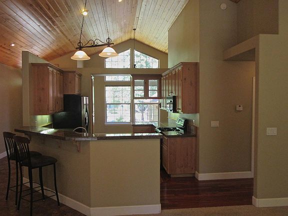 A BRIGHT AND SHINEY STAR.... ON KLAMATH TRAIL! You will agree once you step inside! Tile flooring, opens up to the beautiful cherry hardwood floors, spacious formal and INFORMAL Great room with access to the rear deck and more entertaining space! Master Bedroom is private and features private deck, large walk in closet and spacious master bath with walk-in shower...... two more bedrooms and bathroom.... AND a great laundry/utility room with a Pantry. Garage is detached but connected by a Breezeway for those wintery times - all finished inside with a drop down staircase --- LOTS of storage options!! Enjoy cocktails on the rear deck that overlooks the Greenbelt and lots of deer, and mountain critters! Front yard landscaping is charming with a rocked bridge, water falls down to the front thru a babbling brook into a small pond - SO CHARMING!