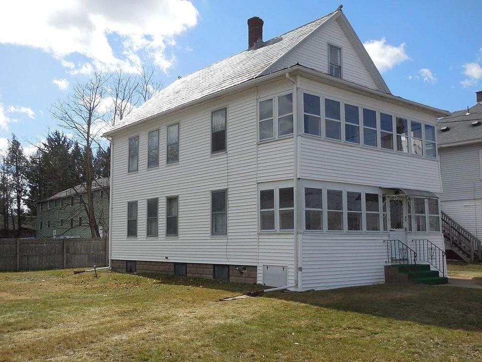 Great investment opportunity with this solid two-family. It has vinyl siding, newer water & sewer main from the street to the house, separate 60 amp circuit breaker panels to each unit. Enclosed porches, walk-up attic with expansion potential, great location close to town. There is one heating system with a separate zone to each unit. General updates are needed to both units. There is no driveway, but there is space on the lot to create one. To be sold in it's current condition. May not qualify for conventional financing.