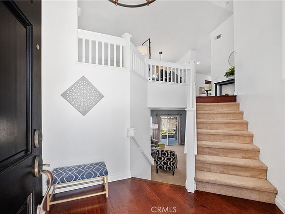 Welcome to your dream home in the heart of Melinda Heights, nestled in this resort-like community of Rancho Santa Margarita. This exquisite 4-bedroom, 3-bathroom, 2200 sq ft approx., residence offers a perfect blend of elegance, functionality, and comfort, designed to cater to your every need. Step inside and be greeted by the soaring ceilings and abundant natural light that graces the spacious living room, creating an inviting atmosphere for both relaxation and entertaining. The living room features a cozy fireplace, perfect for those chilly evenings, and seamlessly flows into the open-concept kitchen and dining area. The well-appointed kitchen boasts modern stainless-steel appliances, ample counter space with a large island and a functional deck just outside, ideal for al fresco dining and hosting gatherings. The thoughtfully designed floor plan includes a luxurious primary bedroom conveniently located on the main level, offering privacy and ease of access. The primary suite features a spacious layout with an en-suite dual sinks, soaking tub, tiled shower, and large walk-in closet. Downstairs, discover three generously sized bedrooms centered around a versatile bonus room that leads out to the expansive backyard. This bonus room is perfect for a home theater, playroom, or additional living space. The backyard offers multiple areas to enjoy, including lush real grass, hardscaped patio, sitting area for the firepit and thriving lemon and lime trees, creating a tranquil environment for relaxation and play. Additional upgrades include PEX Repipe, Interior painting, newer deck and more! The property also includes a spacious three-car garage, providing ample storage and parking options. Melinda Heights neighborhood is resort like living and includes walkability to Altisima's Park with pool/pickleball/basketball/BBQ, and with your SAMLARC membership you will enjoy other pools, parks, Beach Club, playgrounds, sports facilities plus enjoy walks around the RSM lake and more! This RSM location allows you also the convenience of 241 Toll Rd, O'Neil Wilderness Park, Oso Reservoir, shopping, and Blue Ribbon schools to include walkability to Melinda Heights Elementary! Experience the best of Rancho Santa Margarita living! No Mello Roo's!