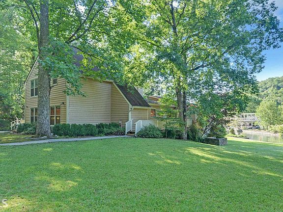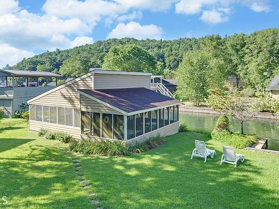 FEE SIMPLE 3B 2b contemporary Lake Burton home. 2 slip boathouse with lifts and screened porch. Great buy to get on Lake Burton. High ceilings, open concept kitchen, 2 living areas with fireplaces. Large flat yard for the dogs and kids, spacious decks for outdoor living. 2 space carport with storage and plenty of guest parking. Come put your touches on this home to make it your own. Not in flood zone. Easy access to Waterfall CC, Clayton and Laprades.