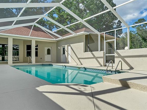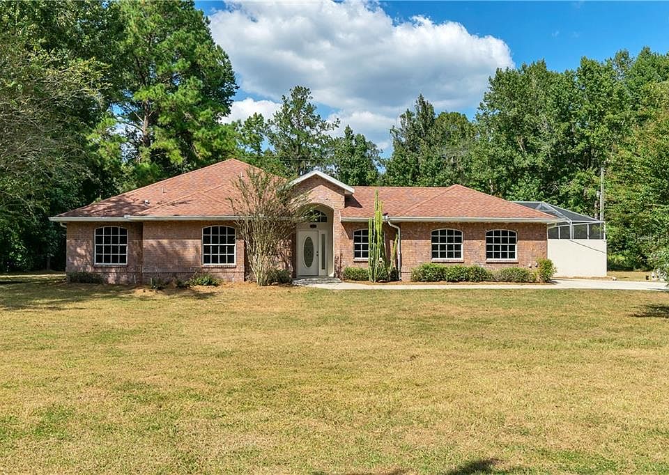 Gorgeous Courtyard Pool Home on 1.2 Beautiful Acres! Open Great Room design adjacent to wonderful kitchen showcasing stainless steel appliances, pantry closet, breakfast bar and designer fixtures. Fabulous Pool/Lanai area is the focal point of the home and includes its own dedicated full bath. Elegant Master Bedroom Suite with new lush carpeting, dual walk-in closets, jetted soaking tub, dual sinks and separate tiled shower. 3 Additional ample-sized bedrooms with new carpeting and lots of closet space. Amazing laundry room with base and wall cabinetry and laundry tub. Bonus features include Fresh paint throughout, split bedroom design, 16X16 tile flooring, oversized side-entry garage, large arched windows for natural light and massive rear yard surrounded by mature trees.
