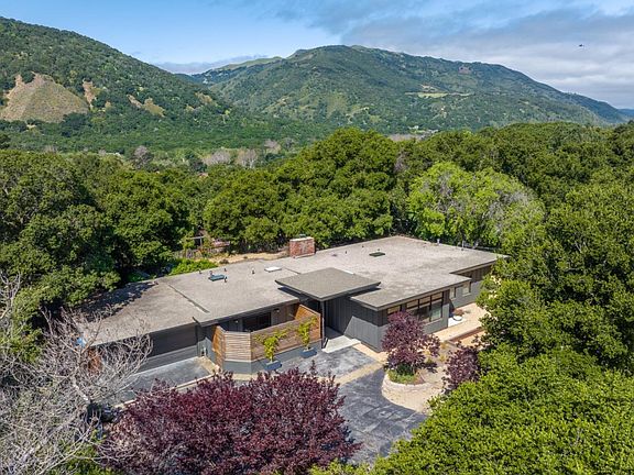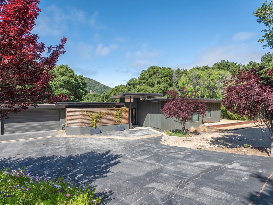 Welcome to this stunning mid-century modern home in the heart of Carmel Valley. Situated on a flat three-quarter acre lot, this chic residence has undergone a complete renovation and expansion, resulting in a true masterpiece. Boasting a single-level layout with high ceilings and dramatic wood beams, this home offers a captivating modern concept living area. The kitchen is a chef's dream, featuring a gorgeous, huge center island, an eight-burner Wolf range, quartz countertops, subway tile, and a wall of beautiful glass front cabinetry. With modern rustic black French doors leading to the outside from most rooms plus large windows throughout, the natural light floods every room, showcasing the breathtaking setting. The primary suite is a private oasis with two patios, an outdoor shower, and an abundance of natural light. The expansive lot offers endless possibilities, including a bocce ball court, garden boxes, and a play area. An added bonus is the home's location in the highly sought-after water west district, ensuring ample water availability. Don't miss the opportunity to own this remarkable property.