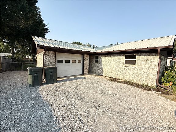 Highlights include a durable metal roof, ensuring long-lasting protection, and a covered back porch that invites you to unwind or host gatherings. The fenced-in backyard offers a secure area for children and pets to play, while rain gutters add to the home's practicality.