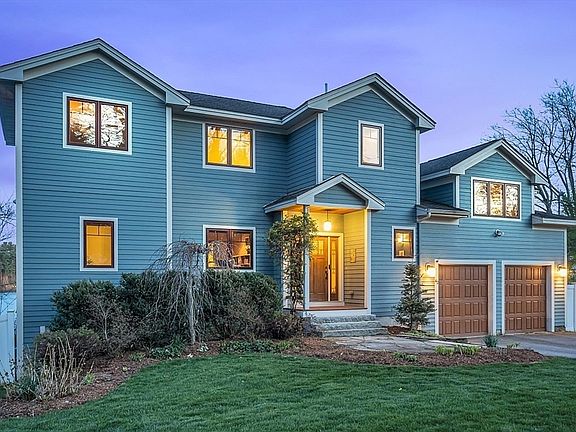 WATERFRONT custom-built Modern Craftsman home & private dock on coveted Nabnasset Lake! STAYCATION year round: swimming, fishing, boating, waterskiing, tubing, wakeboarding + skating, ice fishing, snow-shoeing & bonfires! 100’ lake frontage boasts sweeping views & privacy. OPEN FLOOR PLAN w/ birch floor, Douglas Fir ceiling & stellar lake views between FR w/ gas fireplace, dining & kitchen w/ custom cherry cabinets, Labrador Antique Granite, 6-burner gas range, ext vented hood, 2 wall ovens, 2 sinks & beverage refrigerator. Inviting 3-season sunroom w/ recent windows & glass door to composite, deck & hot tub! FIRST FLOOR MAIN SUITE next to bonus room + 3 more waterfront bedrooms & finished room above garage. Finished LL suite presents water views & door to bluestone patio & backyard. UNBEATABLE LOCATION on quieter & flat side of lake; near top schools, golf, skiing, dining, shopping, healthcare & 35 miles to Boston. Make memories for generations to come!