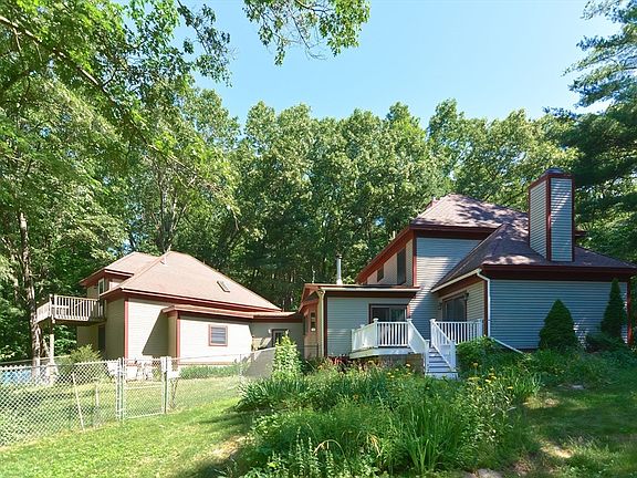 **Price Improvement** As the sellers are aware that this lovely home needs updating, they have adjusted the price accordingly. Versatile, custom home, set on 3+ acres, features 4 BR's & 4 baths, including an In-Law Suite, w/private entrance! A beautiful foyer welcomes you with charming marble tiling, and opens to the stunning dining room, adorned w/a beamed vaulted ceiling. The convenient galley kitchen offers plenty of cabinet space. The living room leading to the deck, a fireplaced Office with a vaulted ceiling & a 3/4 bath with W/D round out the first level of the main house. Upstairs, you'll find the main bedroom w/updated private bath, 2 nicely sized BR's & a full bath. Down the hall on main level, past the garage is the In-Law Suite, w/full kitchen, dining/living space on 1st FL, & BR, full bath & private balcony upstairs. Outside is an oasis of nature, with beautiful perennials, trails for hiking/biking, fruit trees and a garden area! Bring your creativity and make this home.