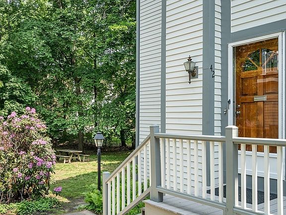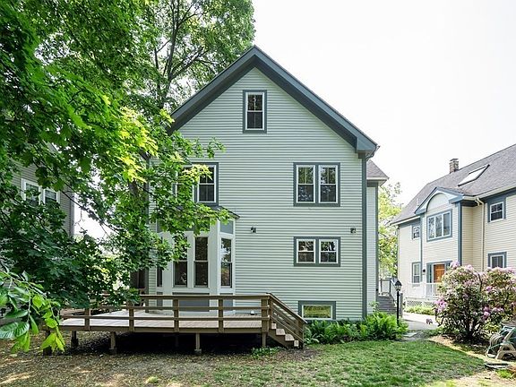 Bright, contemporary townhome on quiet beautiful street. Lush landscaping leads to sunny end unit with wrap around private deck overlooking large common yard and garden. Sunny unit, tall ceilings, hardwood floors. Very clean, recently refinished, ready to move in. Spacious primary suite with cathedral ceiling, plus two bedrooms and finished lower level. Two deeded parking spaces. 3 block walk to Arlington Center and Mystic River trails. Quiet location near shopping, entertainment and recreation.