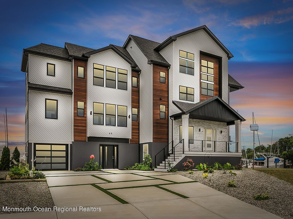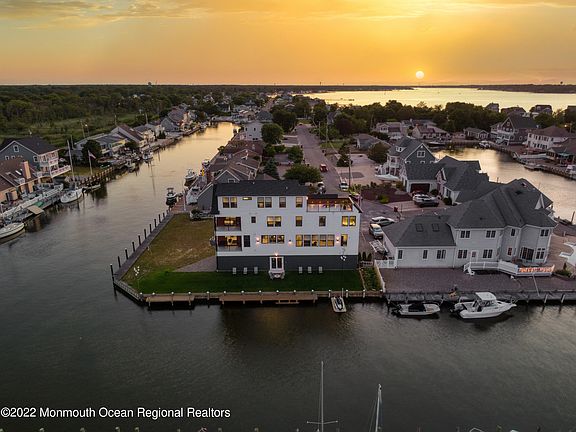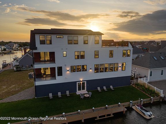 2022 MODERN JERSEY SHORE LIVING at the end of a quiet road in the Good Luck Point area of Bayville, New Jersey. Built-in 2022 this Waterfront home features 5 Bedrooms, 3.5 Bathrooms & 3,251 Sqft. Pulling up, you will instantly notice the striking curb appeal and custom concrete and grass driveway leading up to the home entrance. Upon entering, a three-story staircase will greet you with wire railings, beautiful wood moldings, and a stunning centered chandelier. Walking up the stairs will land you in the Luxurious Kitchen that is open to that family room. Featuring Quartz countertops, a large center island with a waterfall countertop, stainless steel appliances, Pot filler, and tons of cabinetry. Across from the kitchen is the family room, complete with an electric fireplace, recessed lighting, exposed beams, and many windows giving you stunning views of good luck point & The Barnegat Bay. Additionally, on this floor, you will find a home office, laundry room, shaft area set for an elevator, and a room with a balcony overlooking the backyard. Upstairs on the second floor, you will find the massive primary bedroom with an attached walk-in closet & luxurious bathroom featuring Quartz dual vessel sinks with a waterfall countertop, a stand-alone bathtub, and a sizeable glassed-in steam shower. Two other bedrooms reside on this floor, both overlooking the backyard, one of which features a balcony. Moving up to the third floor, you will find a large Loft, two additional bedrooms, and a full bathroom. Ready for the home's best views, step out to the rooftop deck featuring virtually a 360° view of Barnegat Bay, The Toms River, and even The Ocean! Moving down to the ground floor, you will find a huge area for storage, a garage (you can easily add an additional garage door), and a back door giving access to the backyard & dock. At the dock, you will find all the space you need for your water toys, boats, and more. Conveniently at the end of the lagoon, you will find a gas station making filling up your boat engine a breeze. Just outside the lagoon is the mouth of the Toms River, and to the right are the marshlands of Good Luck Point and the rest of the bay. Are you in love with the open ocean? You're in luck! This home is just a 25-minute boat ride to the Barnegat Bay Inlet that opens to the Atlantic Ocean, perfect for the fisherman of the family. This home truly stands apart from the rest with its striking modern design and the convenience of coastal living. Schedule your showing today!