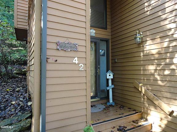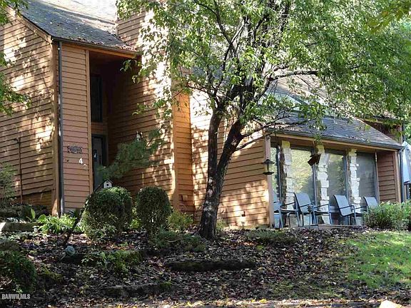 Charming 3 bedroom 2 bath home set higher on the site, there should be glimpses of ER south golf course when leaves are down. The upper level also has a family room/bedroom with sleeper sofa for larger groups. Additional small sitting room adjacent to this room opens to small rear deck for excellent privacy. Home has wood burning fireplace as well as gutters. Home has excellent curb appeal given the fact that there are natural limestone columns for contrast with the cedar exterior, these columns continue to the interior where they add extra interest and charm. Sitting porch at front exterior continues across the front of the house. Home has recently installed blacktop driveway (2019), exterior was restained in 2016 and decks (front and rear) were restained in 2018. Numerous skylites in house at main and upper levels. This home is currently on the Eagle Ridge Spa/Rental program, (# 609). The home is offered furnished and said furnishings shall be conveyed via bill of sale at closing.