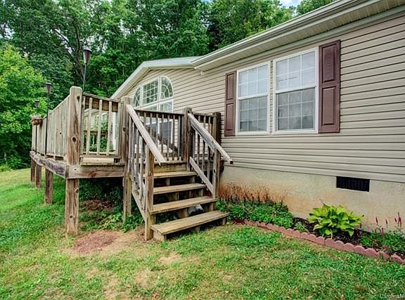 three bedroom, two bath, year 2000 double wide on block foundation, with a gorgeous mountain view. Sold as is but in good livable shape (roof has some hail damage but no leaks, and both porches could use some love). Some repairs may be requested at additional cost (for example roof replacement) to be performed during contract period. New heat pump, new doors and storm doors were installed three years ago. One year old dishwasher. 2 X 6 walls by Liberty, flooring is ¾" waterproof plywood. PEX / ABS plumbing.