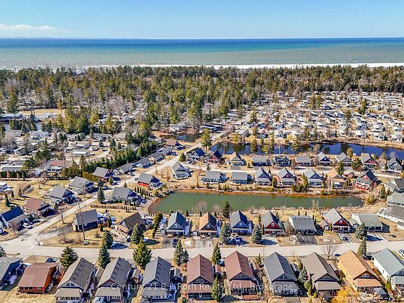 Tucked in a peaceful setting within a sought-after gated community and backing onto a shimmering pond, this charming cottage-style home is a dream come true. Wake up with the sun as you sip your morning coffee on the front porch, feeling the warmth of the first light and the gentle breeze in the air. Step inside, where every inch of this home wraps you in comfort and charm. The open, airy living spaces are bathed in natural light, highlighting warm tones, soft inviting textures, and thoughtful details that make it feel like a true retreat. The heart of the home is the cozy yet spacious living room, where a cozy fireplace invites you to curl up with a book or share laughter-filled evenings with loved ones. The kitchen is a perfect blend of elegance and modern convenience, making every meal feel special. As evening falls, retreat to the back deck with a glass of wine and watch the sky explode into breathtaking colors as the sun sets over the pond. Beyond your doorstep, this exclusive community offers an incredible lifestyle, featuring indoor and outdoor pools, a tennis court, mini putt, a ball hockey rink, a splash pad, and a recreation center. Playgrounds and private walking trails lead you straight to the sandy shores of breathtaking Georgian Bay, where endless days of sun, sand, and relaxation await. Whether you're unwinding in the dreamy primary suite, hosting intimate gatherings, or exploring the community's incredible amenities, this home is more than just a place to live, its a place to truly belong. Monthly fees will be $887.91, which include Land Lease, maintenance fees, and property taxes.
