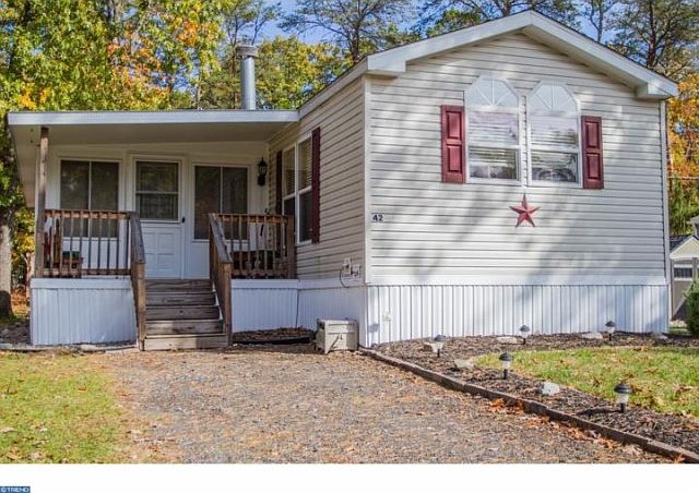 Welcome to Allenwood Estates!! One of South Jersey's most well established 55+ communities. Nestled in the heart of a this peaceful park like setting, this spacious home with over 1,100 sq ft of living space is ready for its new owner. One of the largest models in this community, with features that include a large family room, fireplace, warm inviting eat-in kitchen, master bedroom with private bath, 2 more bedrooms, main hall bath, along with plenty of storage! Both master and hall baths are nicely maintained. A year round sunroom allows in lots of natural light and has relaxing views. This home provides all the ingredients for an easy active low maintenance life style. Other amenities include ceiling fans, shed, central air. And NO real estate TAXES! Conveniently situated to shopping, dining and only 45 minutes from Atlantic City and LBI. Don't miss this opportunity!
