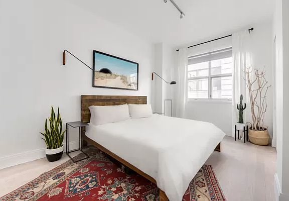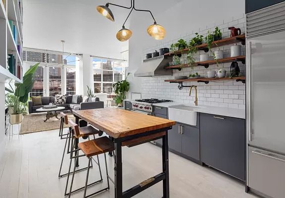 Chic designer style and extraordinary sunlight fill every inch of this recently renovated convertible three-bedroom, two-bathroom condo in ultra-desirable Dumbo. With large windows facing north, west and south, you'll enjoy fantastic natural light in every room of this 1,330-square-foot loft residence. Pale hardwood floors and soaring 11-foot ceilings underscore the bright and airy ambiance, while stylish light fixtures make a bold designer statement throughout. Enjoy magnificent entertaining or relaxed daily life in the expansive corner great room featuring a stately decorative fireplace and a private balcony overlooking the Brooklyn Bridge approach. Chefs will flock to the magnificent kitchen where a wall of custom built-ins provides excellent storage and a subway tile backsplash is accented by dark grout and exposed shelves. Sleek cabinetry, stone countertops, a farm sink and stainless steel appliances, including vented Wolf range and Sub-Zero refrigerator, make cooking and clean-up a breeze. Two large bedrooms, one with a walk-in closet, are placed along the northern exposure within easy reach of a stunning full bathroom with gorgeous tile, a frameless glass rain shower and contemporary fixtures. A windowed, marble bathroom with a large tub/shower is positioned directly off the living room, and extra closets and an in-unit washer-dryer add effortless ease to this incredible Dumbo home. Currently configured as a two-bedroom, this spacious residence could easily accommodate the addition of a luxurious owner's suite with en suite bathroom and a walk-in closet. 42 Main Street is a modern boutique condominium where residents enjoy part-time doorman service, a fitness center and sauna, storage, bike room and a large furnished roof deck with wonderful views. Subletting and pets are permitted in this well-run building, and the Starbucks on the ground floor will keep you caffeinated and ready to take on the world. From this incredible location at the corner of Main and Front Street, marvelous Dumbo attractions unfold at your feet. There's great seafood, French and Italian cuisine and vibrant nightlife nearby, and Empire Stores and St. Ann's Warehouse deliver world-class shopping and entertainment. With Brooklyn Bridge Park just two blocks away, you'll have easy access to waterfront open space, jaw-dropping views and endless recreation. Nearby A/C, F, 2/3, R and 4/5 subway lines, the Fulton Ferry Landing, excellent bus service and CitiBikes provide easy access to the rest of the city.