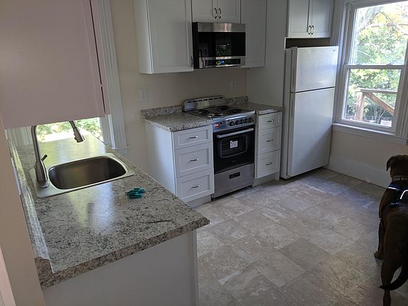 Open house 10am to noon Saturday Oct 16th. Driveway off of wheeler Ave. Heat included. 2 BR/ 1Ba apartment 3 min walk from Framingham State College. New kitchen. All new windows, new flooring. 2 floors. Large LR, Full Bath, Eat-In kitchen, and 1BR on 2nd floor. 2nd BR on 3rd floor. Off-street parking. Shared Washer and Dryer in the basement. Tenant pays electric. Owner pays gas, heat, trash, maintenance, water and sewer. Heat included.. Owner pays for gas, trash and sewer. Tenants pays electrical. LMR and SD required by commencement date.